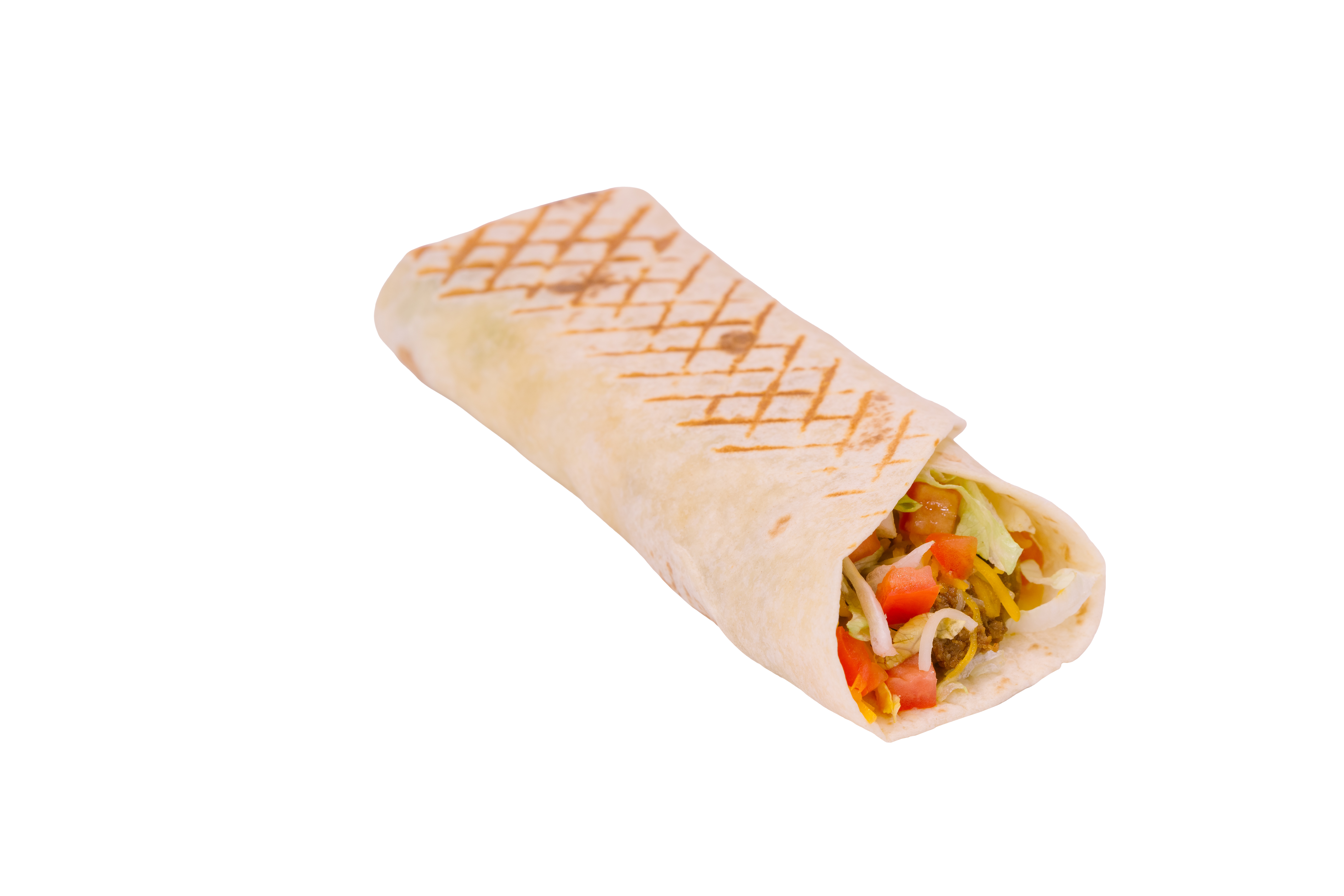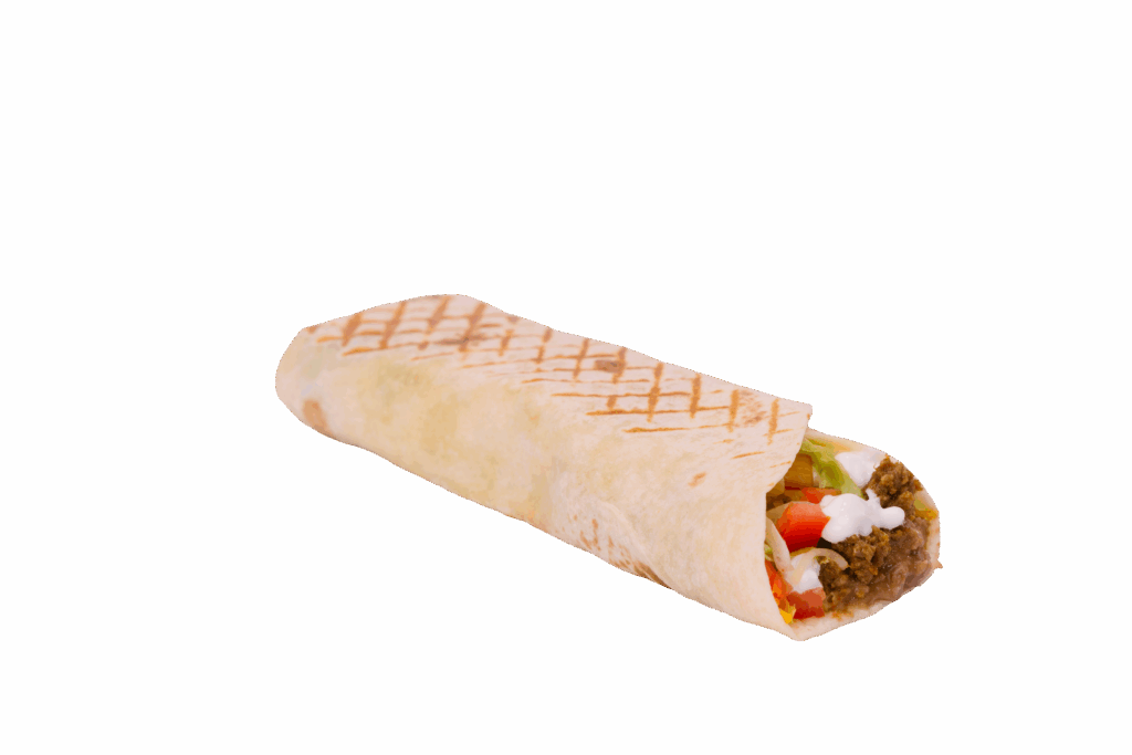 10″ Flour Tortilla filled with Ground Beef, Lettuce, Shredded Cheese and Tomato.